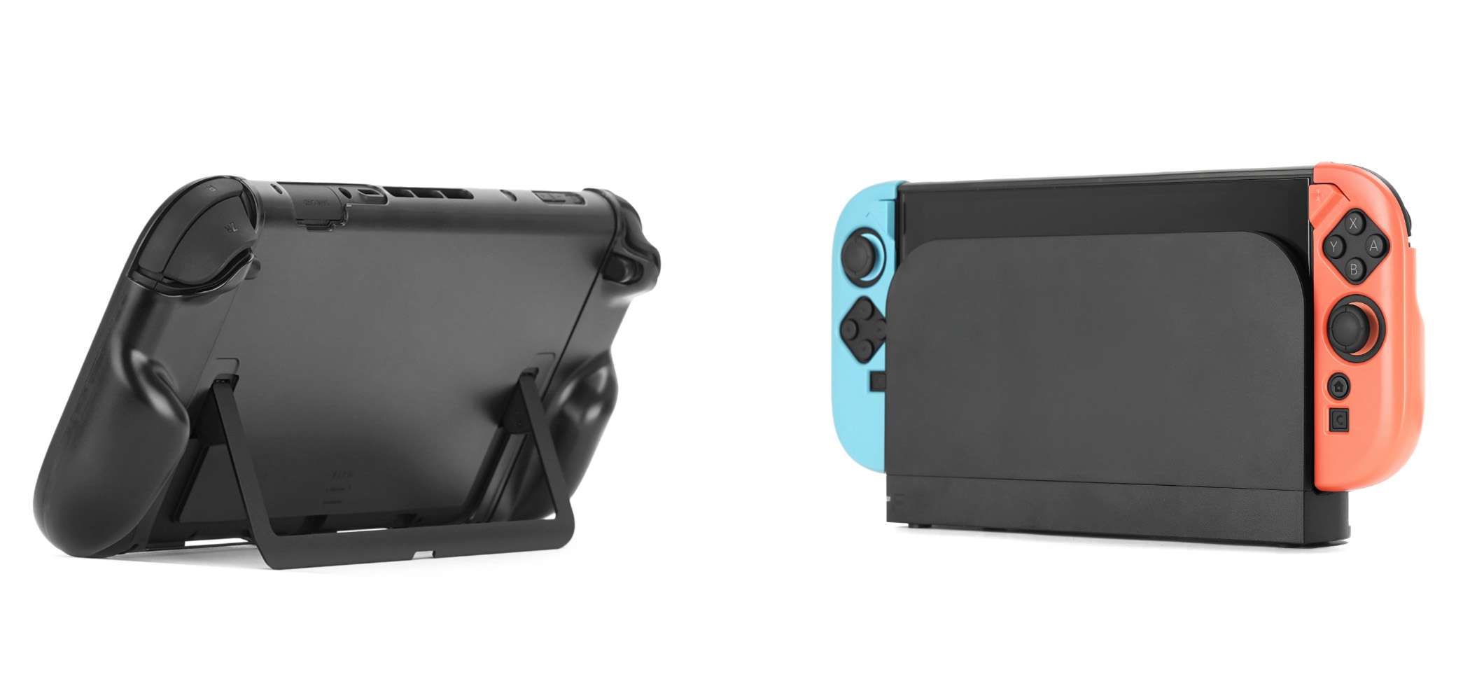接続端子や各種ボタンに至るまで純正の使用感を一切阻害しないよう、専用に精密設計されています。幾度もの試行錯誤の上で完成した人間工学に基づいた本体から分離可能なエルゴノミクスグリップ設計によって、携帯モード、片手持ち、パーティーモード時の横持ち、そしてマウスモードの全てでしっかりと手に馴染みます。